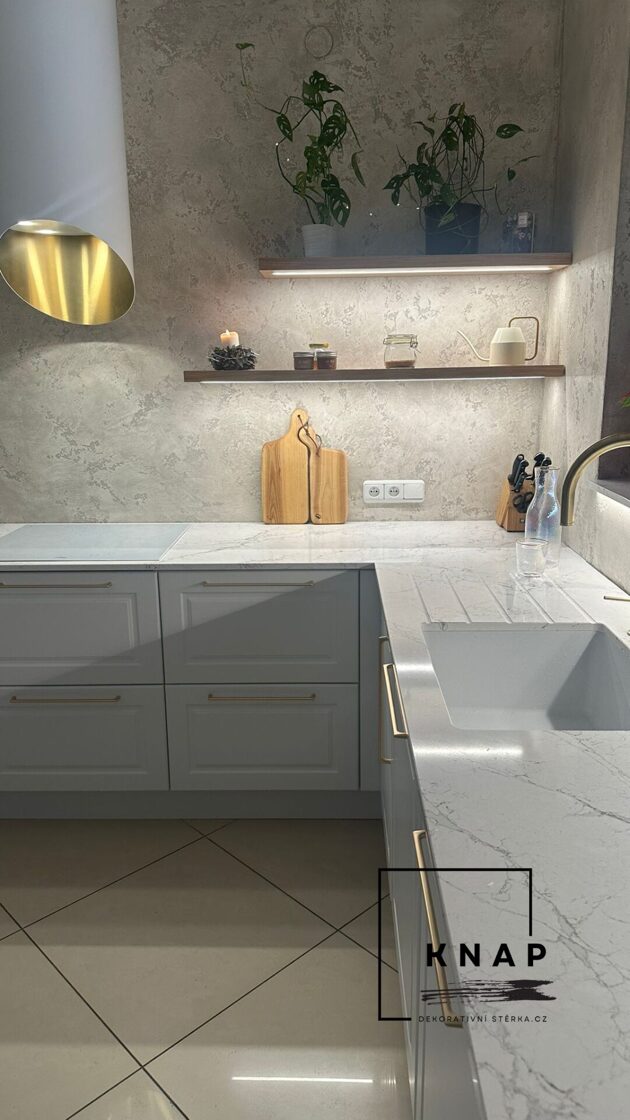 Realizace betonové dekorativní stěrky v kuchyni